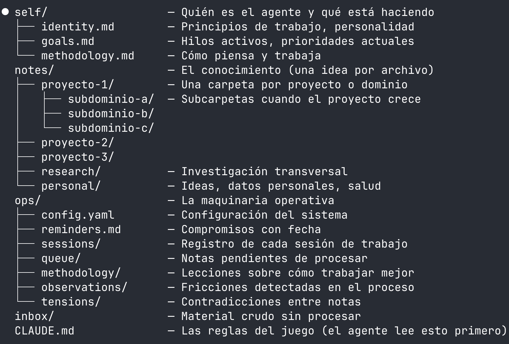 "Lee mi vault en /vault", así de simple. Ahora tu nuevo agente tiene toda la info de lo que venís trabajando y no va a cometer los mismos errores.